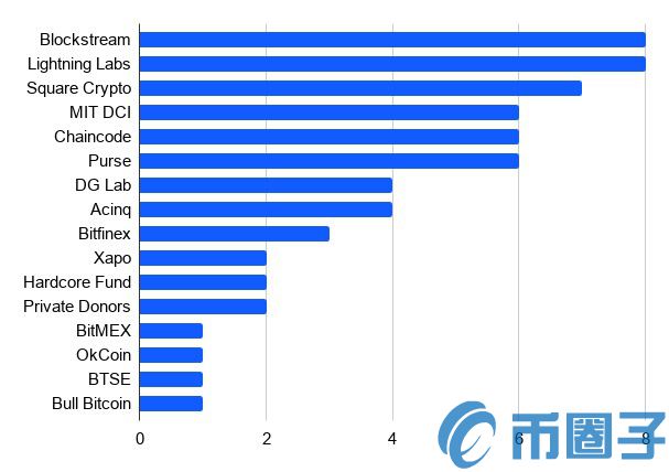 根据特闷收集的数据,Blockstream和Lightning Labs是比特币开源开发的最大贡献者,而就Bitcoin Core的贡献者而言,Chaincode Labs目前是最大的开发资助金主。