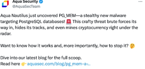“这一威胁事件再次凸显了互联网连接数据库面临的密码安全挑战。”Aqua公司安全专家指出,“许多组织因配置错误或身份控制不足,导致数据库密码设置过于简单,从而成为PG_MEM等恶意软件的攻击目标。这是一个普遍存在的问题,亟需引起所有数据库管理员和组织负责人的高度重视。”
