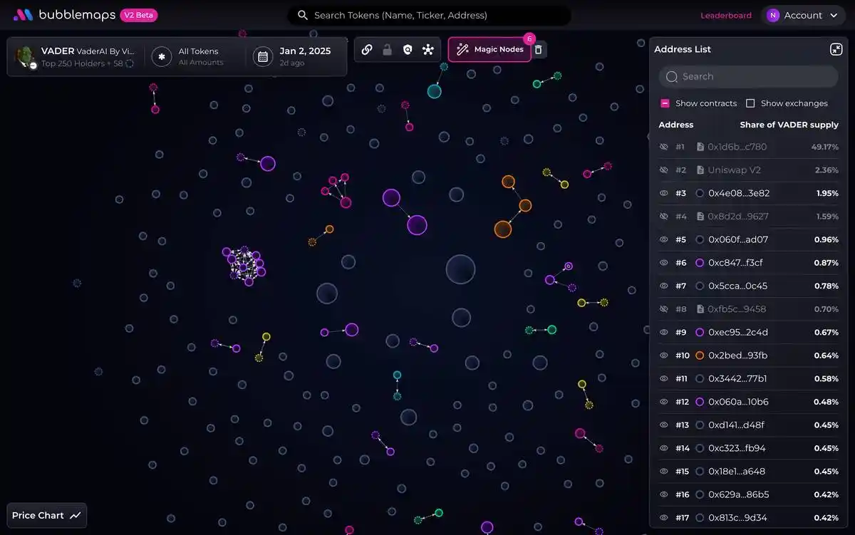 在这份名单中,$VADER 是前 10 个集群持有比例最低的 Token,仅为 10%。