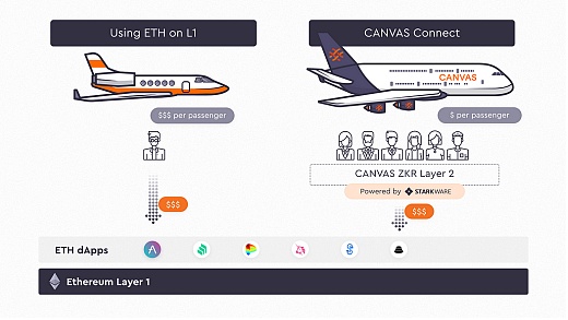分析Canvas的基本面,可从它需要解决的最基本的业务开始。DeFi在走向主流采用的道路上面临的最大挑战之一是用户在Layer 1(L1)区块链(如以太坊)上遇到的过高交易费用。它的逻辑类似个人乘坐私人飞机,所有燃油费都由一个人支付。与燃油价格一样,L1手续费可能会剧烈波动,并使在L1 DeFi上进行投资成为一场风险游戏,因为用户无法确定进入和退出的成本。此外,这些费用对于主流趋势的采用构成了重要障碍。