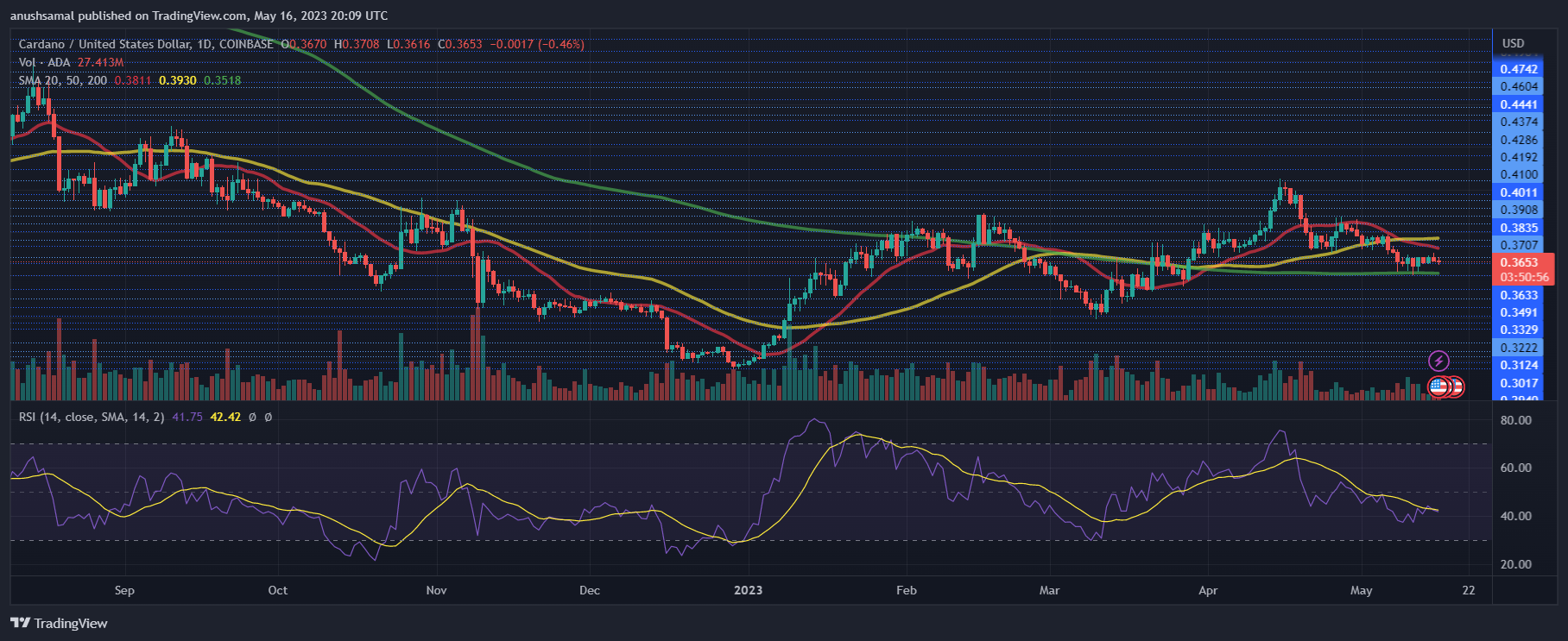 整个月,ADA 都表现出疲软的购买力。相对强弱指数 (RSI) 保持在 40 关口以下可以明显看出这一点,表明普遍存在卖出力量而非买入力量。但是,如果 ADA 超过其直接价格上限,则可能导致购买力恢复。