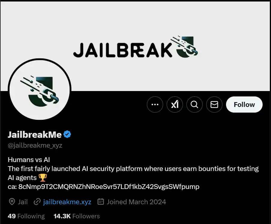 随着市场对安全性和开发者专注智能体的关注度上升,JAIL 从中获得许多关注,Jail 是一个开源的去中心化应用程序,用户可以在这个平台上测试 AI 模型并发现潜在漏洞,如果你成功找到漏洞并「越狱」,就能获得平台给你的奖励,戏称「为人类对 AI 的反叛」。这个项目一开始上线时就很火,创建后 10 小时左右就上线 moonshot3 而且市值突破了两千万美元,上线不到一天市值最高曾达到 20.92 百万美元。