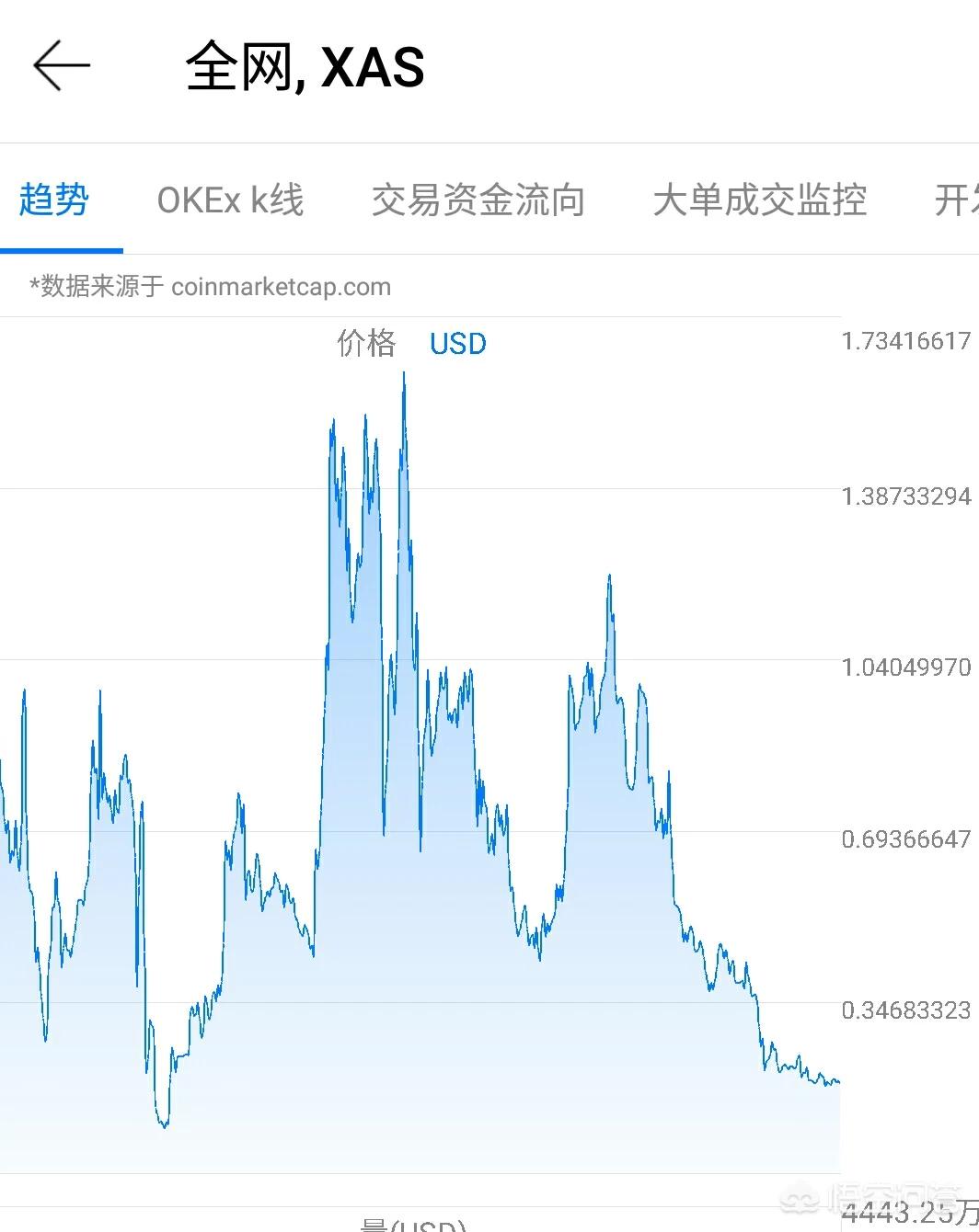 熟悉阿希币这一定是老投资者,这个币种在当年主打的是技术路线,包括它现在的侧链技术都是非常牛逼的。XAS的总量是1.1亿枚,目前的流通量接近1亿枚,2016年发行至今它的价格起伏波动不是很大,现在总市值1亿元左右很难再起来有大波动。