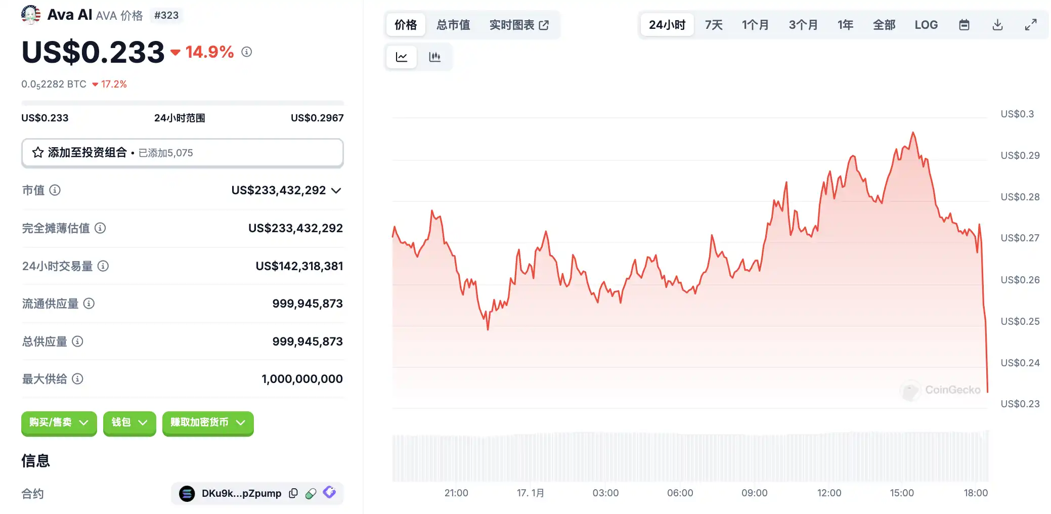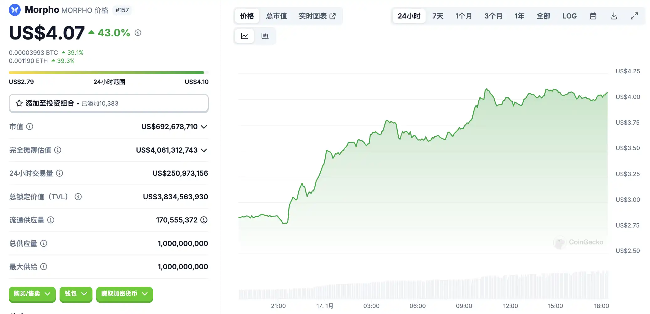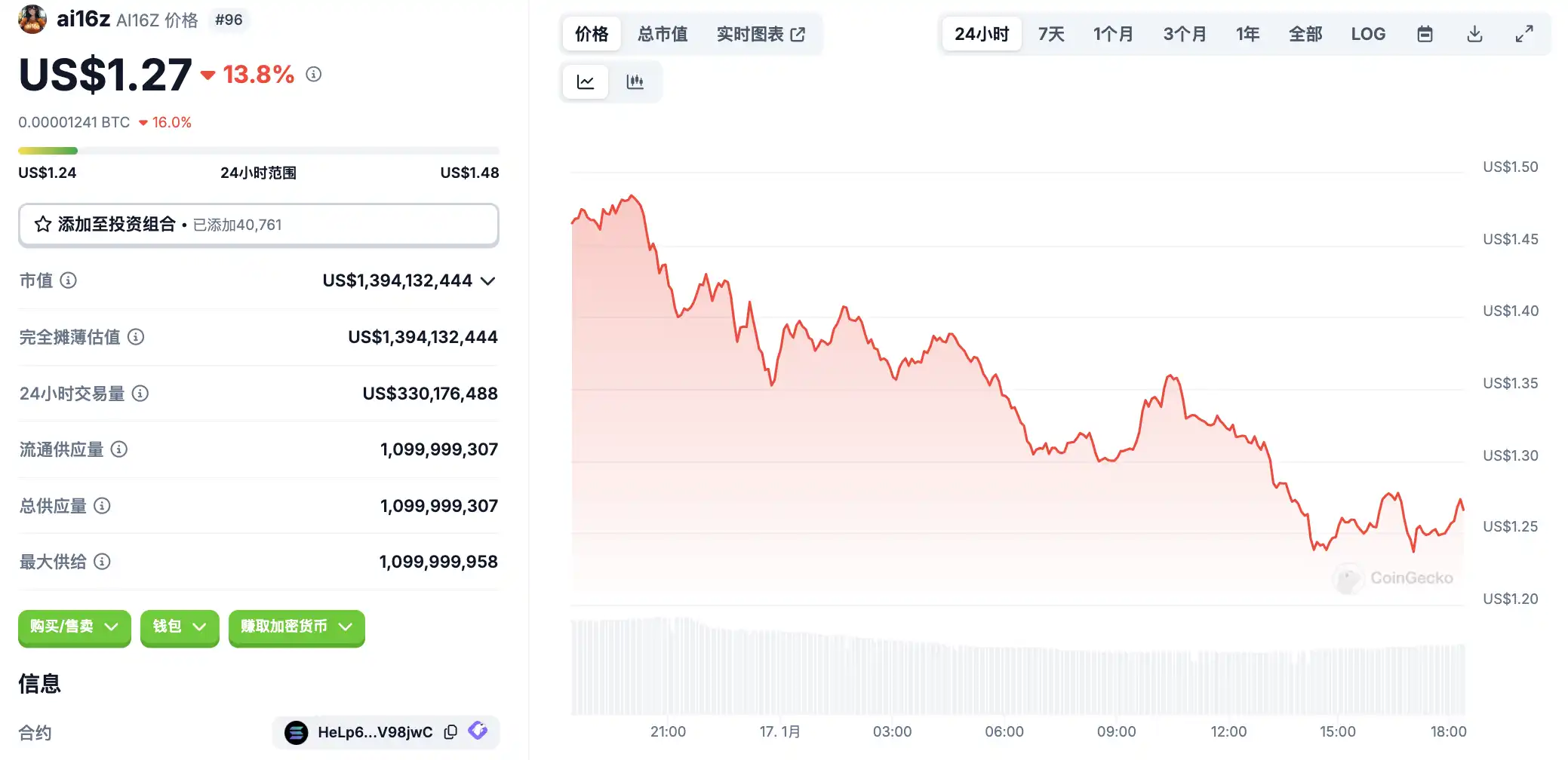 1 月 17 日代币波动情况,按交易量筛选并排列