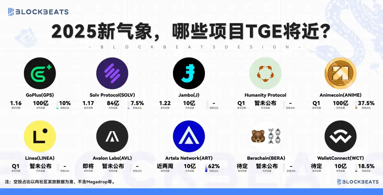 2025 年一季度将有多个加密项目可能推出主网或进行 TGE,包括 Berachain、Monad 和 Nillion 等。尽管有些项目的上线时间存在社区传闻或未获官方确认,但如 Berachain 与 Monad 已发布相关活动,吸引了大量资金和参与者。Nillion 和 Abstract 等则明确了上线时间,并且正在进行测试网或其他互动任务。此外,一些大项目如 OpenSea 和 Story 也在持续推进中。