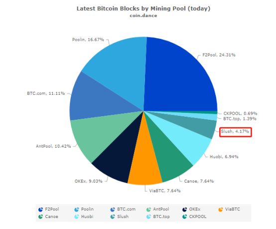 比特币网络GPU挖矿军备赛的开启,催发了矿池的诞生——2010年11月27日,世界上首个比特币矿池Slushpool成立,2011年6月矿池Eligis入局,2012年中旬BTC Guild也随之加入……但这些早期矿池里面,活跃至今的只有Slushpool。
