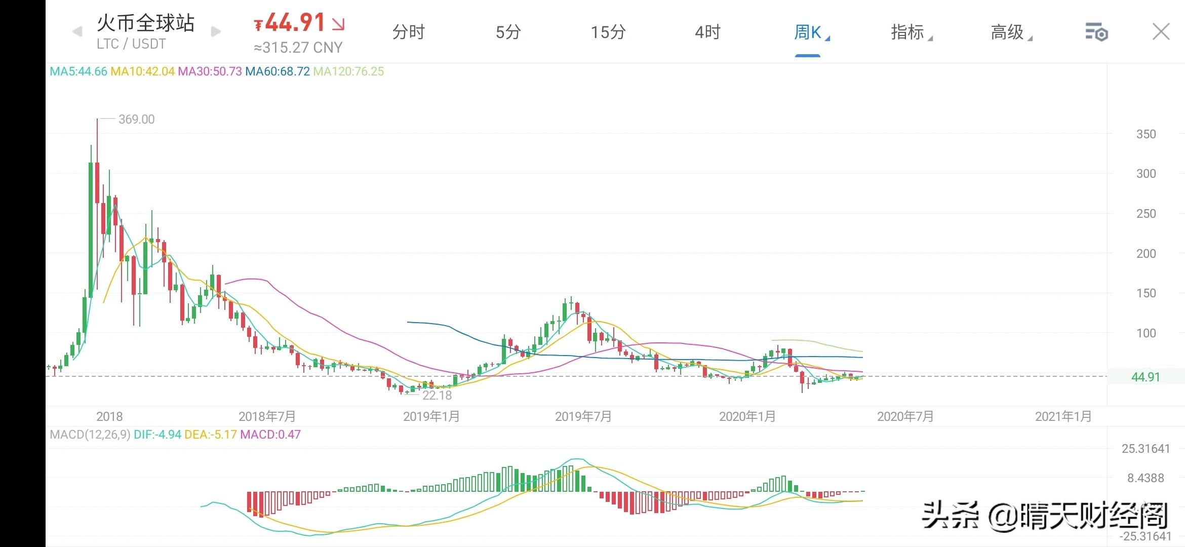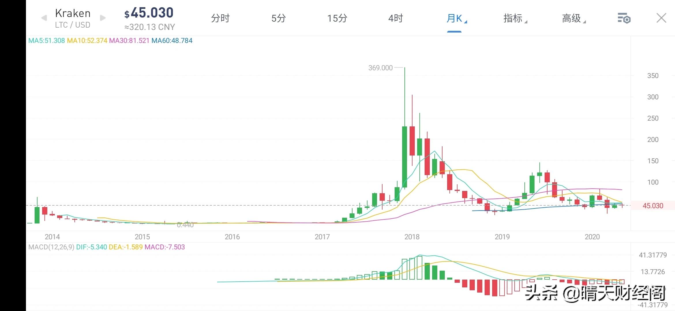 莱特币算是我第一只关注还有买卖的币,当时莱特币才500-600块,买入后不久后不断创新高了,当时比特币也是牛市准备破2万的节奏,莱特币也是这个时候最高,达到2400块,然后熊市的来到,莱特币也联动大市可以下跌了,被打回原型了。