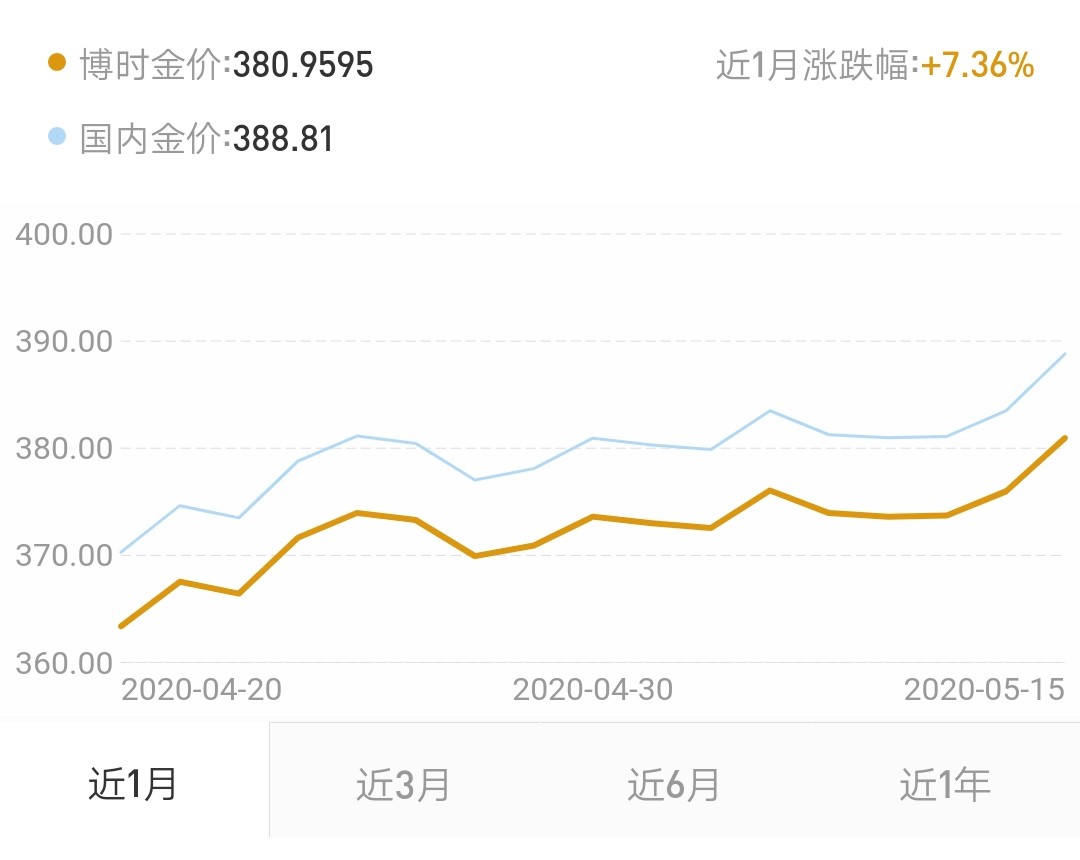 大家可以看一看今年黄金现在它的抛出价格大概是380元/g,近一个月黄金的上涨幅度为7.36%。而这5年黄金上涨的幅度也不足莱特币一个零头吧。