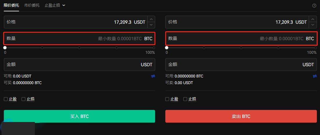 7.根据图片依次进行操作,在交易页面左侧输入选择BTC/USDT交易对