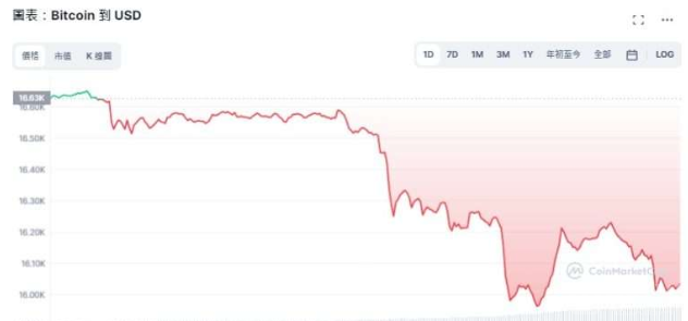 在过去3 日里,比特币(BTC)都在16,500 至16,800 美元价格区位震荡,而在今日,比特币一举跌破1.6 万美元大关,最深在今早10 时下挫至15,905 美元低点。