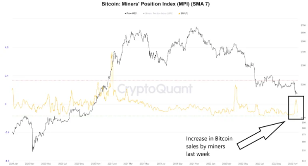 CryptoQuant 公布数据显示, 最近1 周,矿工头寸指数(MPI)显著增加,这表明矿工抛售的比特币数量有所增加,这可被视为比特币价格过去1 周以来持续下挫的原因之一。