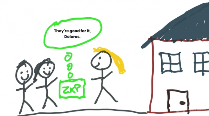 可以想象一个场景:酒吧门口排了长长的队,如果这些排队者想要进入酒吧就必须向保镖证明其本人已经成年。那么排队者就是自己年龄的证明者(prover),保镖是验证者(verifier),但保镖并不知道他是否可以信任排队的人。