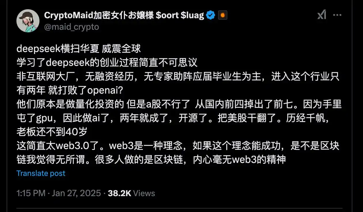1.Deepseek 利好 Web3 AI. @maid_crypto