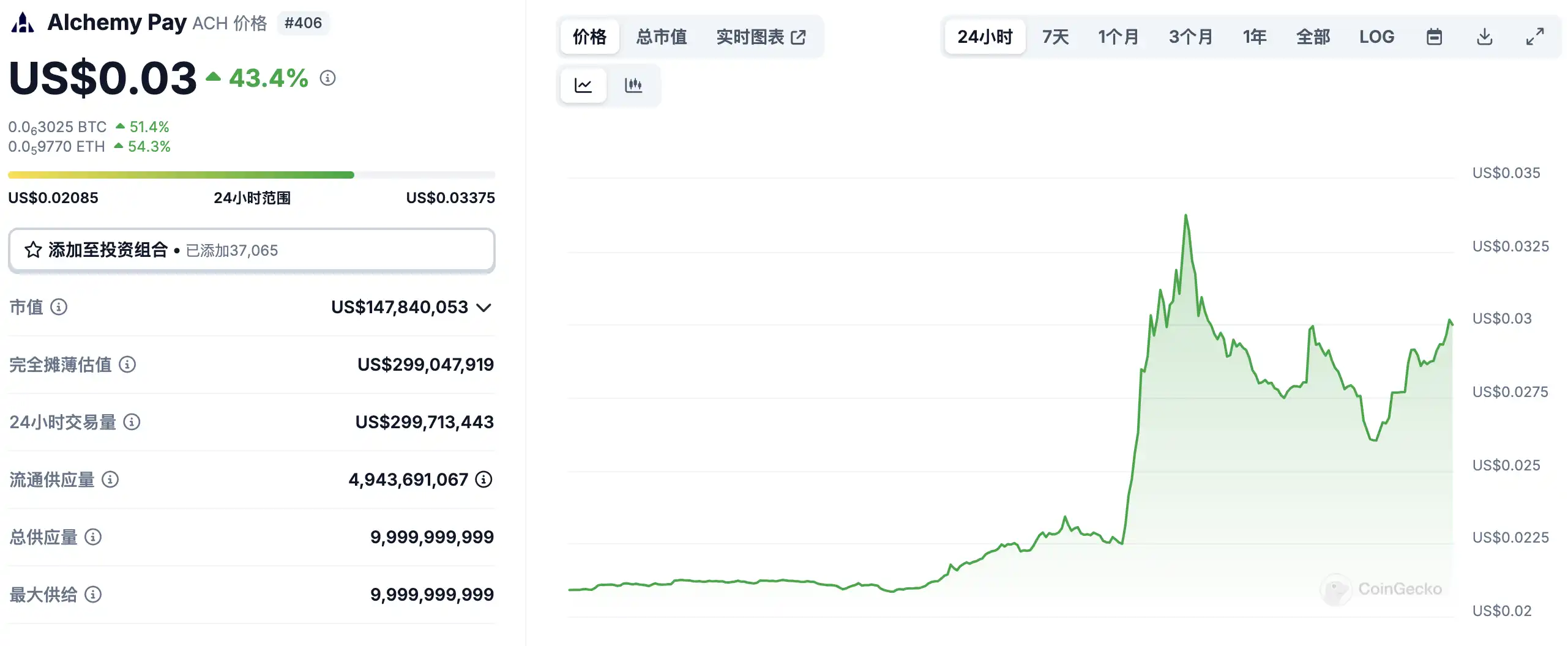 3.ACH 24 小时涨超 41%,暂报 0.02947 美元