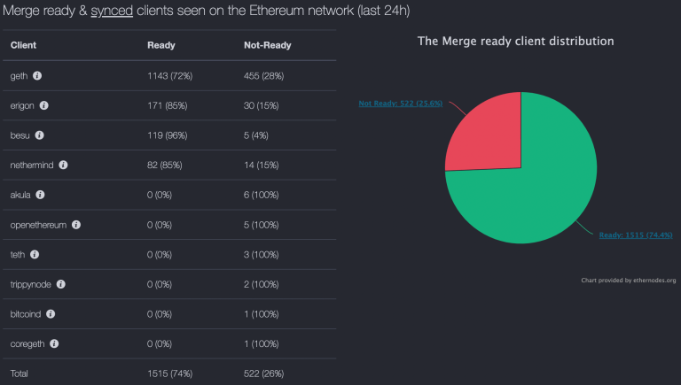 尽管以太坊创办人Vitalik Buterin在9/6还提醒「务必更新客户端软件」,但结果还是导致漏块率上升。好消息是已有超过74%的节点营运商更新了软件,若低于66%,最终的合并升级将无法完成。