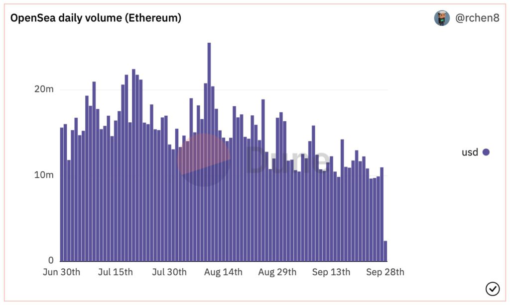 因此他每天会观察在Opensea的日交易量。如果交易量低,他会倾向购买他一直关注的项目;相反的,如果交易量高于平均水平,他会预备售出。