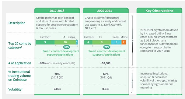 根据波士頓咨询集团(BCG)、Bitget 和 Foresight Ventures 联合发布的一份报告显示,目前加密生态相关的应用约有 1 万个,而在 2017 年仅有 800 余个。从 DeFi 到 NFT,加密世界在不同的垂直领域不断扩张,连接到 Dapp 的钱包数量增加了 7 倍,在 2021 年底达到了 270 万个的历史新高,加密用户在与不同 Dapp 进行交互的过程中留下了数以亿计的链上数据,这些数据有交易买卖、有质押借贷、有治理投票等。