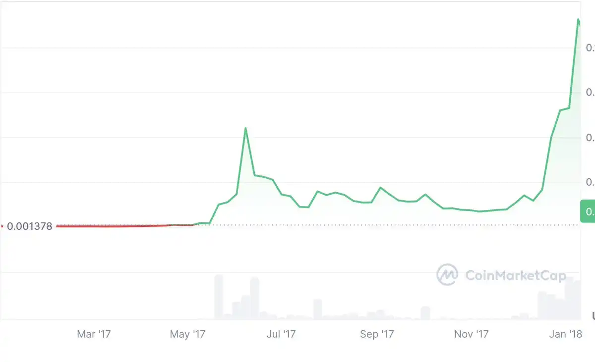 我基于当时有限的数据构建了对市场的认知。2015-2017 年间推出的大多数山寨币都没有太长的交易历史。它们的价格图表看起来像是永恒的上升趋势,偶尔的小幅回调更像是下一轮上涨前的短暂停顿。