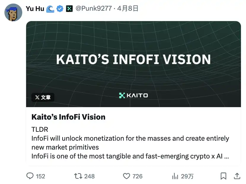 InfoFi 将为大众解锁货币化,并创造全新的市场原语。InfoFi 是最切实且快速崛起的加密 x AI 应用之一,背后有强大的支持