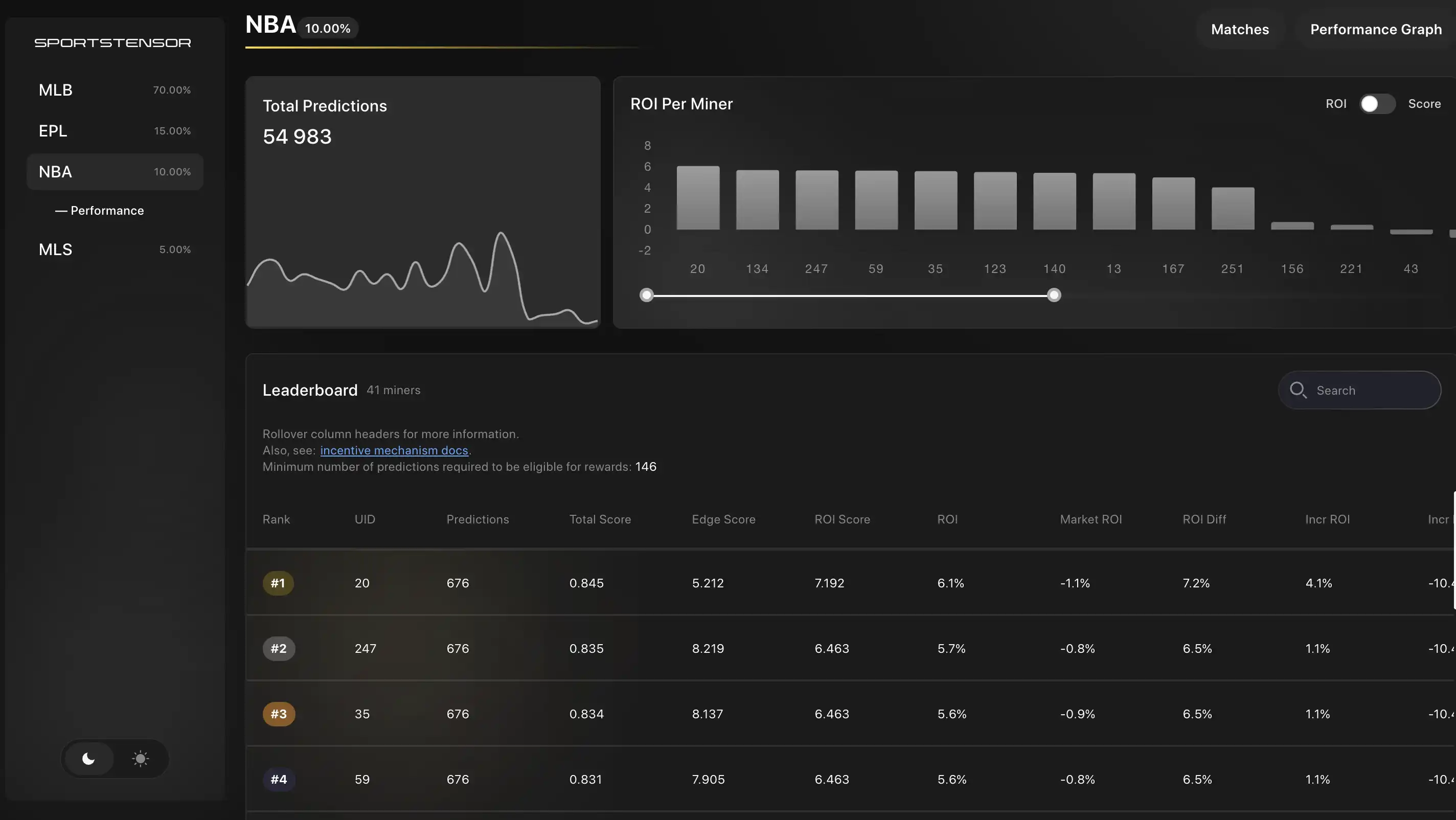 这就是 Sportstensor 模型的优势,矿工使用自己的数据运行自己的机器学习模型,以获得最佳结果。然后,Sportstensor 会取其平均值/中位数,并将其作为识别市场优势的智能指标。模型预测的赔率与市场赔率的差值,长期来看就是使用者能够获利的部分。