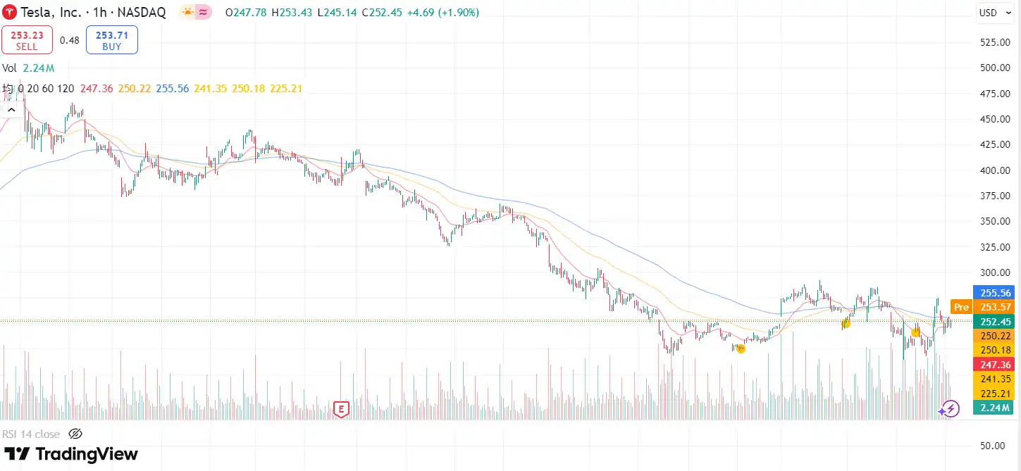 在特朗普的「代言」下,特斯拉股价周二盘中回升,截至收盘上涨 3.79%。