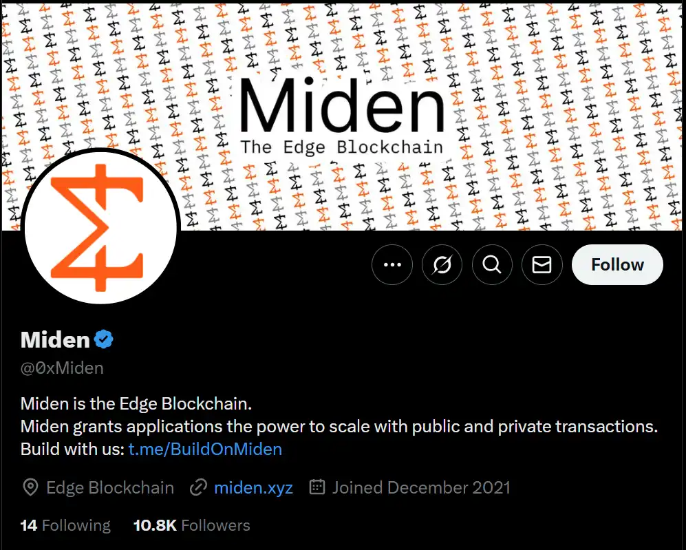今年 4 月 29 日,隐私区块链 0xMiden 官宣拿下 2500 万种子轮融资,由 a16zcrypto、hackVC、1kxnetwork 领投,Finality Capital Partners、Symbolic Capital 等参投,个人投资者包括 Avery Ching(Aptos Labs CEO)和 Rune Christensen(MakerDAO 创始人)。