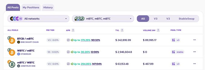 9/ Babypie在多个链和dex上激励 mBTC-BTC 的流动性