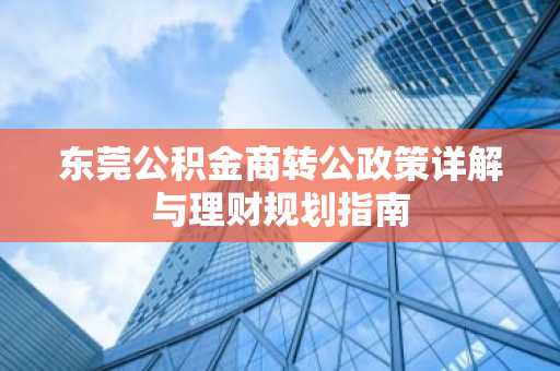 东莞公积金商转公政策详解与理财规划指南