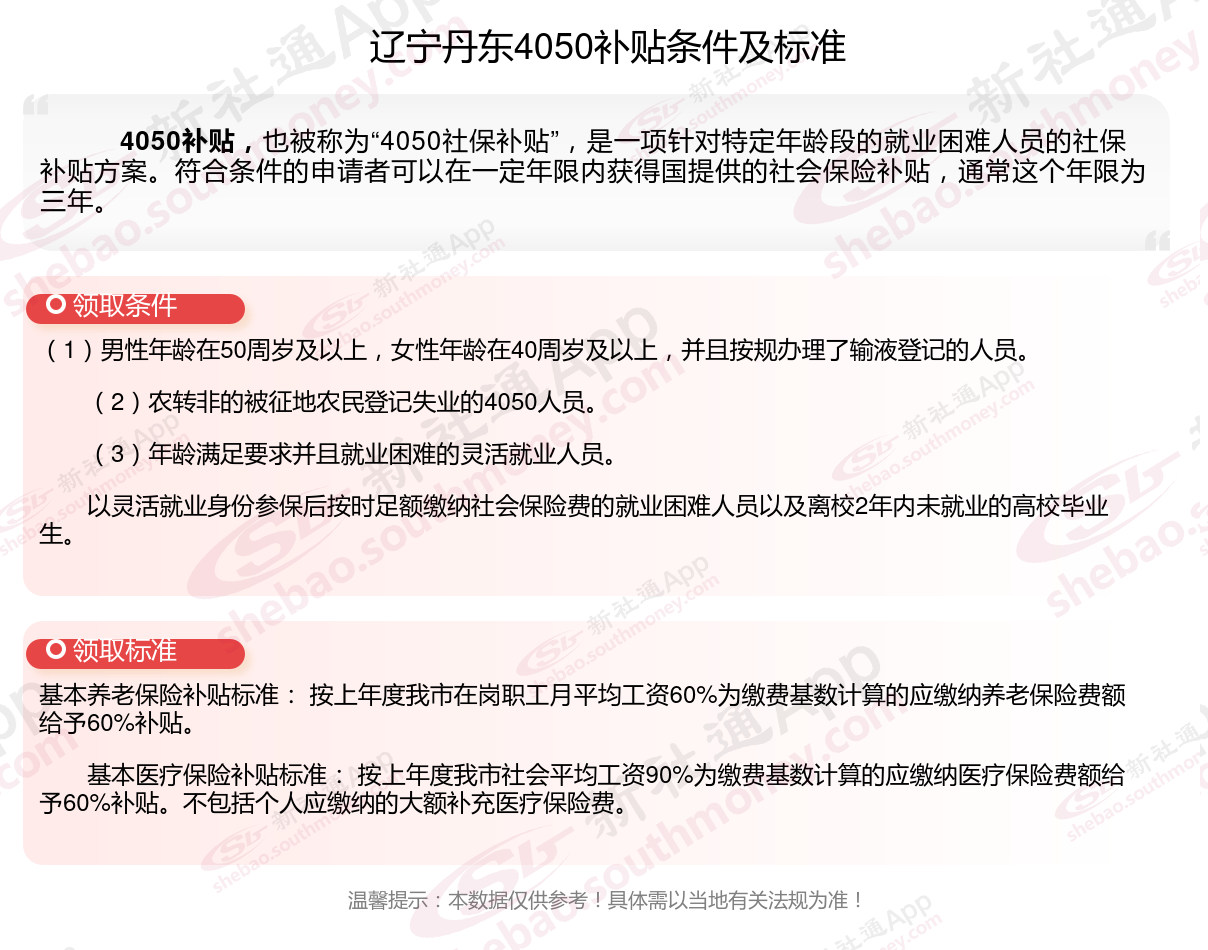 一、2023-2024年辽宁丹东4050社保补贴标准,最新领取条件来了
