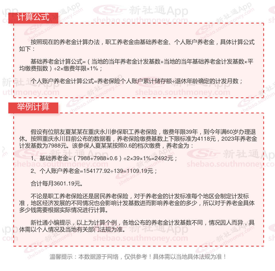 最新,重庆永川养老金计算方法及公式2024举例 一文教你轻松计算你的养老金!