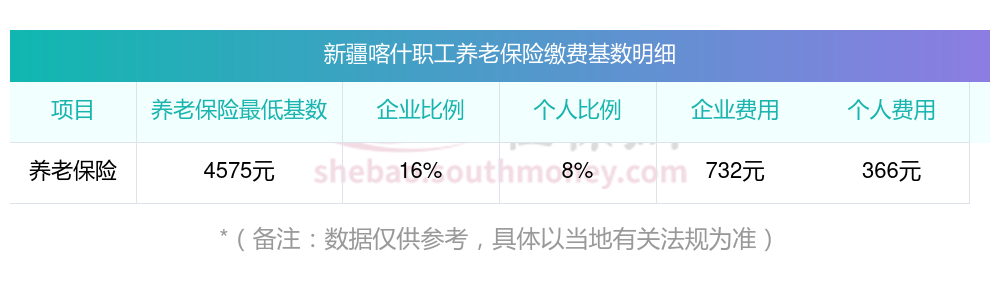 新疆喀什养老保险缴费基数2023-2024年最新标准(最低)