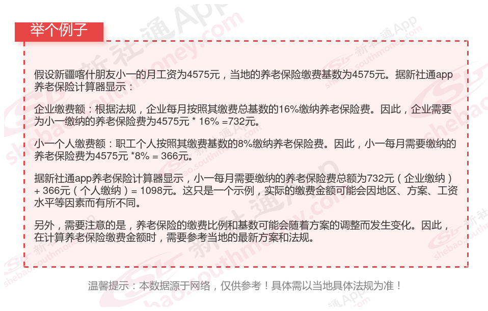 新疆喀什养老保险一个月要交多少钱?举例说明
