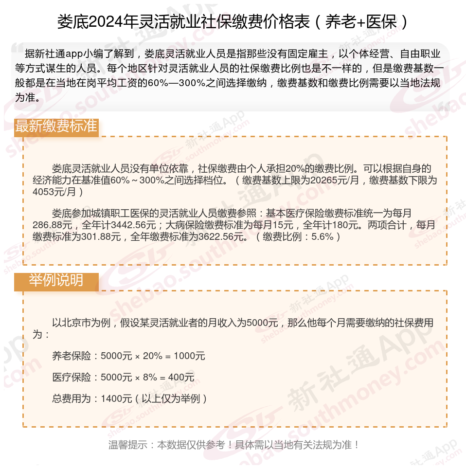 一、2024年娄底灵活就业社保缴费标准表 娄底灵活就业社保多少钱一个月?