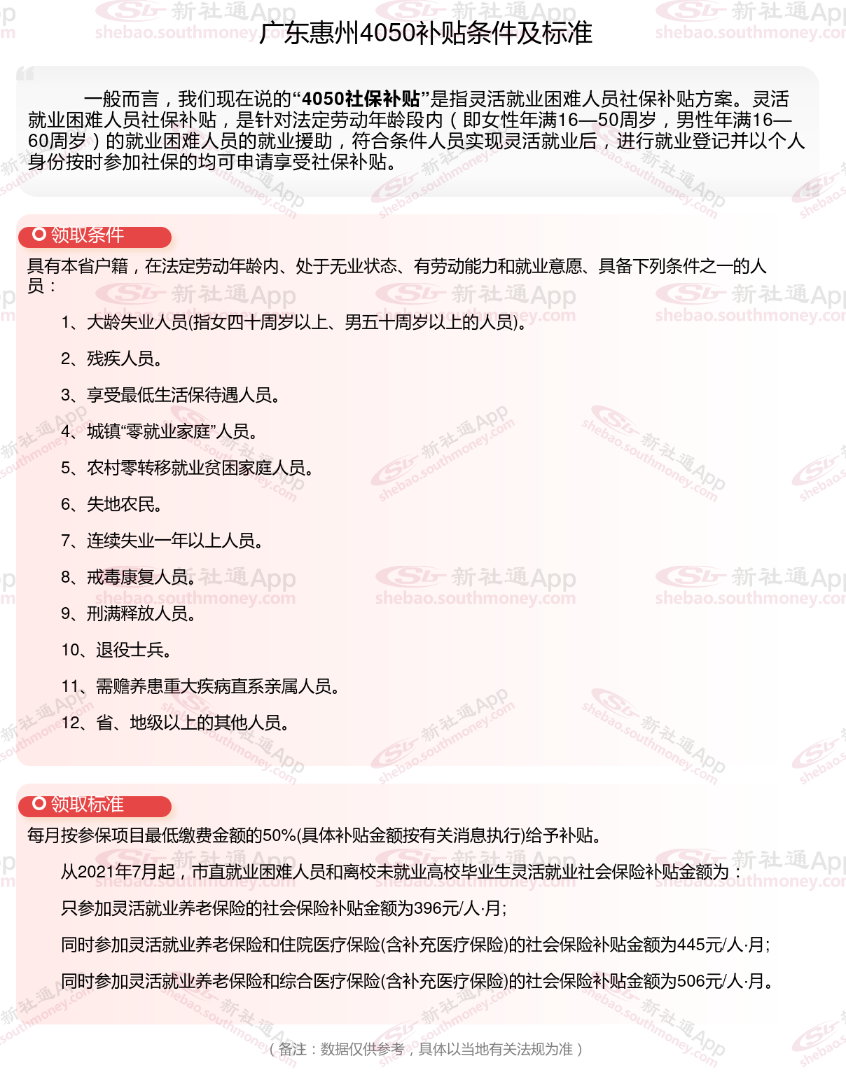 二、广东惠州4050社保补贴标准及条件2023-2024年
