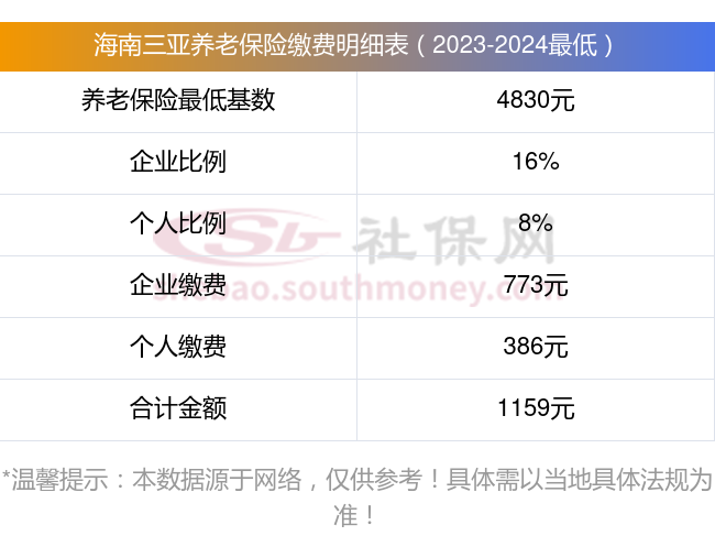 2023-2024海南三亚社保缴费标准(养老保险缴费基数 缴费比例)