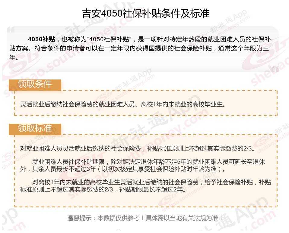 二、吉安4050社保补贴标准及条件2023-2024年