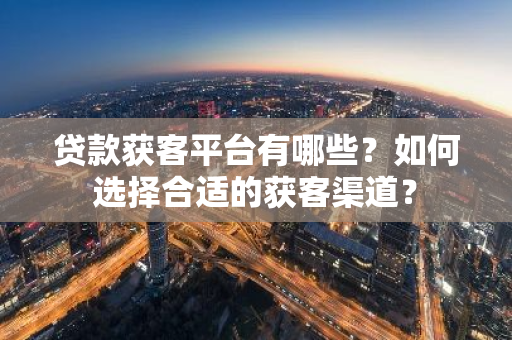 贷款获客平台有哪些?如何选择合适的获客渠道?