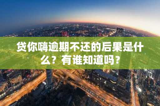 贷你嗨逾期不还的后果是什么?有谁知道吗? 更新时间:2025-04-29 15:00:10 •阅读 0 贷你嗨逾期不还的后果很严重,主要有以下几点: 1、对个人信用产生影响 逾期不还的记录会被记入个人信用记录和央行的征信系统之上; 2、产生罚金 自逾期当天起,平台就会按比例收取一定金额的逾期罚息(滞纳金); 3、受到法律惩罚 比如说被限制出境、影响生活和工作、被划扣养老金等,