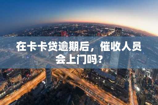 在卡卡贷逾期后,催收人员会上门吗? 更新时间:2025-05-04 13:00:54 •阅读 0 卡卡贷会上门催收,你的贷款逾期时间很长就会上门催款。 卡卡贷的催收分为三阶段: 1.逾期时间较短,卡卡贷工作人员会提醒还款,并告知逾期后果; 2.逾期时间较长,卡卡贷会开始电话轰炸,不停的给逾期借款人打电话,联系人电话也都会打一遍; 3.逾期时间很长,卡卡贷会找人上门催收。