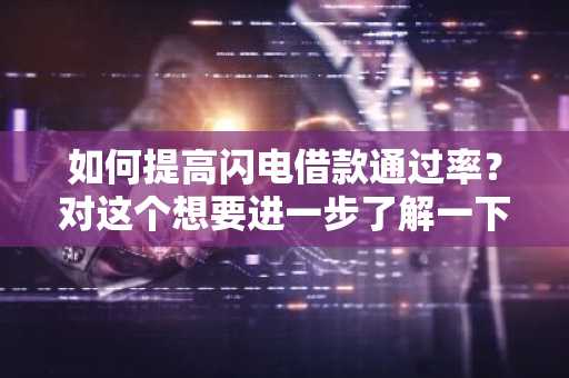 如何提高闪电借款通过率?对这个想要进一步了解一下。 更新时间:2025-05-04 14:00:04 •阅读 0 想要提高闪电借款通过率,你需要做好以下准备工作: 1.年龄在18至60周岁之间是必须的也是最基本的; 2.现在使用的手机号已经有6个月及其以上: 3.必须有信用卡而且在用。