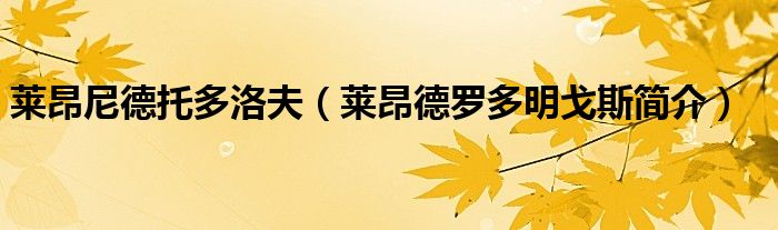 莱昂尼德托多洛夫(莱昂德罗多明戈斯简介)