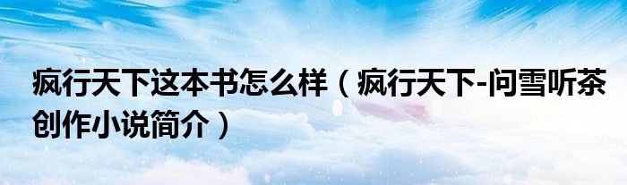 疯行天下这本书怎么样(疯行天下-问雪听茶创作小说简介)