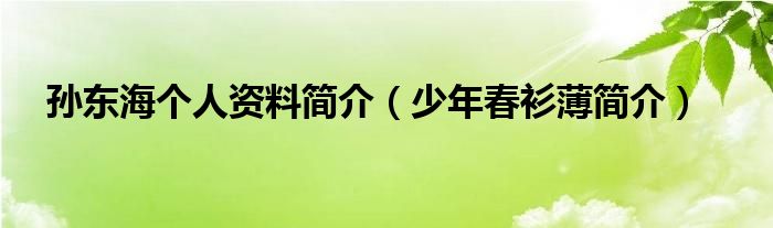 HELLO,我是环球知识网小溪,我来为大家解答以上问题。孙东海个人资料简介,少年春衫薄简介很多人还不知道,现在让我们一起来看看吧!