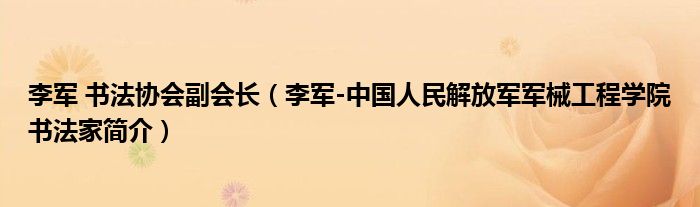 HELLO,我是环球知识网小溪,我来为大家解答以上问题。李军 书法协会副会长,李军-中国人民解放军军械工程学院书法家简介很多人还不知道,现在让我们一起来看看吧!