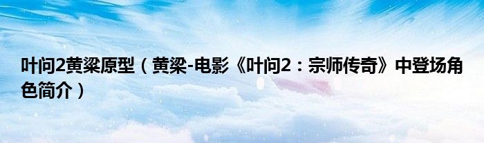 叶问2黄粱原型(黄梁-电影《叶问2:宗师传奇》中登场角色简介)