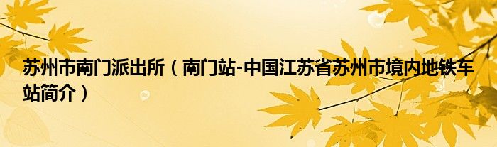 苏州市南门派出所(南门站-中国江苏省苏州市境内地铁车站简介)