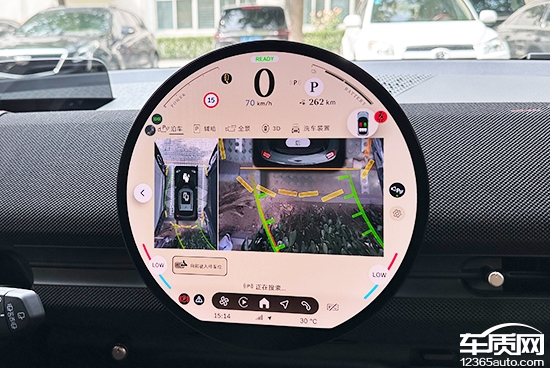 评测车选装了360度全景影像,实测整体画质清晰度不错且没有畸变。同时,画面支持多个角度查看,并配有可随动转向的倒车辅助线,帮助驾驶者更轻松地完成倒车入库等动作,实用性表现符合预期。