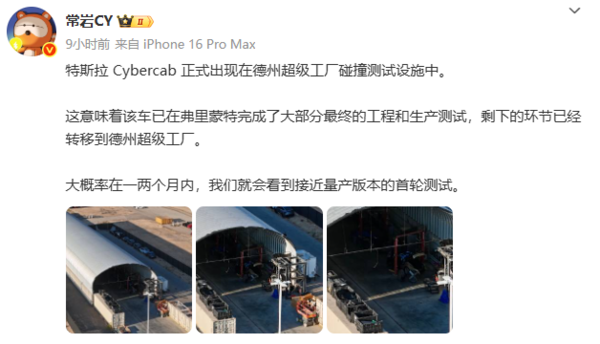 近日,有消息称,特斯拉Cybercab出现在德州超级工厂碰撞测试设施中,这意味着该车已在弗里蒙特完成了大部分最终的工程和生产测试,剩下的环节已经转移到德州超级工厂。在一到两个月内,或将迎来接近量产版本的首轮测试。