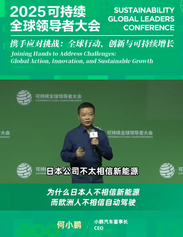 在2025年10月16日于上海世博园区开幕的可持续全球领导者大会上,小鹏汽车董事长何小鹏就全球市场对新能源汽车及自动驾驶技术的接受度差异发表见解。他指出,不同国家和地区的技术偏好与市场认知,往往与其地理环境和道路条件密切相关。