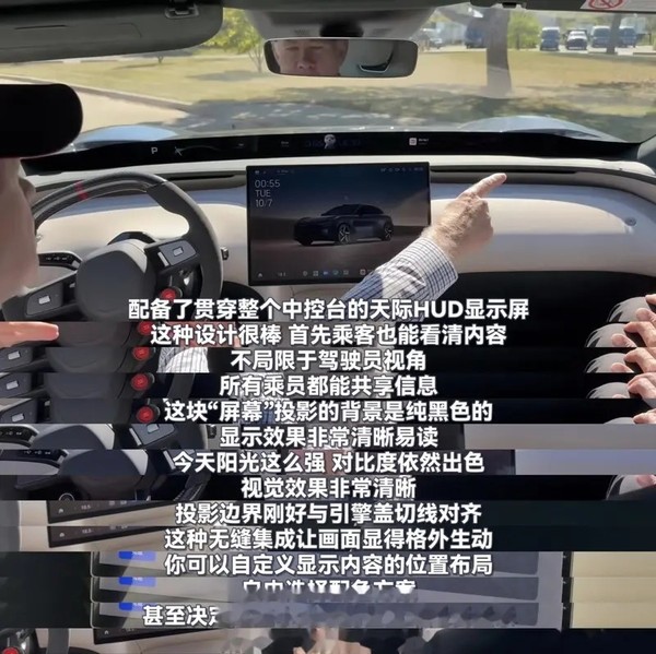 在核心配置与设计上,小米YU7配备贯穿整个中控台的“天际屏全景显示”,投影背景为纯黑色,即便在强光环境下仍保持出色对比度与清晰显示效果,投影边界与引擎盖切线精准对齐,实现无缝集成的生动视觉体验。该显示屏还打破驾驶员视角局限,让所有乘员均可共享信息,用户还能自定义显示内容的位置、布局与配色。此外,前轮搭载布雷博刹车系统,搭配21英寸超大轮毂与米其林轮胎,显著提升行驶舒适性与运动模式下的操控响应。